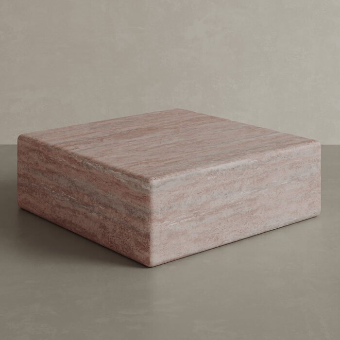 The Cerazo Coffee Table is a remarkable creation, carefully tailored from premium quality Red travertine. This exquisite piece showcases the beauty of natural stone tabletop with subtly rounded edges, providing a harmonious balance between sleek modern design and timeless elegance. The unique honey-comb texture and warm, earthy tones add a touch of natural artistry, making each table a one-of-a-kind masterpiece. Its solid form exudes stability and strength, ensuring that it not only serves as a functional centrepiece but also as a statement of refined taste in any space.