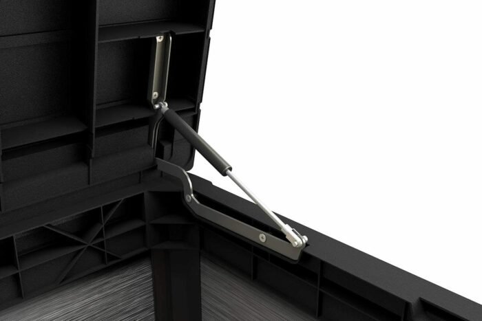 A perfect choice for your outdoor space, the Denali storage box combines an ultra-strong build with an elegant design. This sturdy multi purpose outdoor storage box can comfortably seat two adults and is made of innovative DUOTECH™ material which is weather-resistant, UV protected, and features a rustic wood like texture and a stylish dual tone. Featuring a 757L capacity, the Denali will hold cushions or other accessories, helping to maintain your, patio, or garden clutter-free. The piston system opens the box smoothly, while the lockable lid allows you to keep the box firmly closed when necessary.