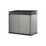 Make your outdoor living space more elegant and store various items securely with the Elite-Store shed. Designed with durability in mind, this storage unit features an ultra-rugged, all-weather build, with rib-reinforced DUOTECH™ walls. The paintable surface also boasts an attractive wood effect texture that won’t rust, peel, or rot. Made with a capacity of 1150 L / 41 cu.ft, this unit will easily hold two 240 L/63 Gal wheelie bins, or outdoor furniture, garden tools, or a BBQ and accessories. A hydraulic piston mechanism, lockable lid, and adjustable brackets complete the design.