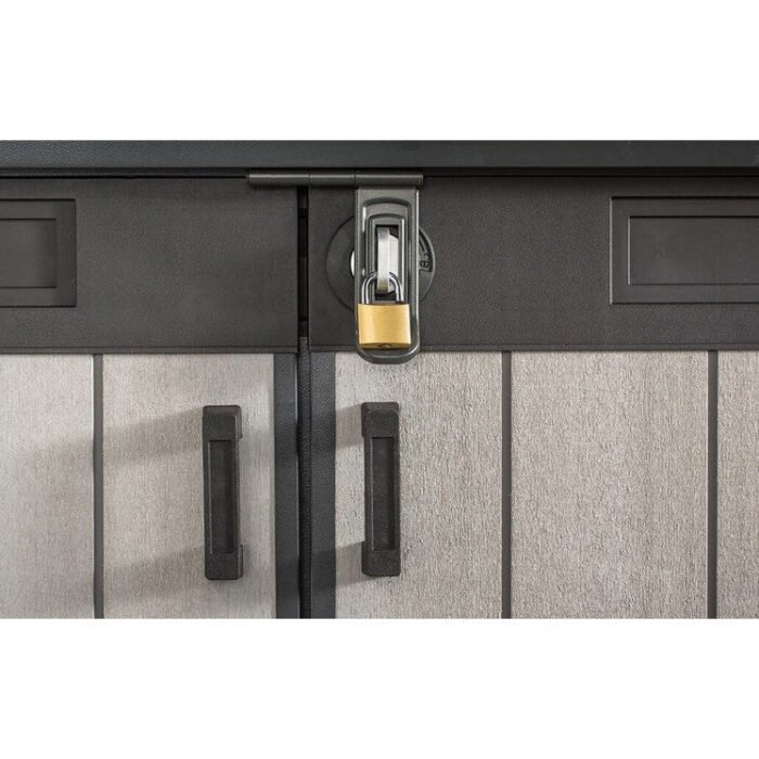 Bringing elegant and durable storage with a fine weathered wooden-textured shed to your garden . The Keter 6′ x 3′ Oakland Grande Store Heavy Duty Plastic Shed – Grey is built for durability from bottom to top with a heavy-duty floor that can hold your heavier items and has a double wall build with steel reinforcement. The Keter 6′ x 3′ Oakland Grande Store Heavy Duty Plastic Shed – Grey is fully weather-resistant and low maintenance