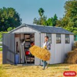 Bringing elegant and durable storage with a fine weathered wooden-textured shed to your garden . The Keter 7.5′ x 15′ Oakland Heavy Duty Plastic Shed – Grey is built for durability from bottom to top with a heavy-duty floor that can hold your heavier items and has a double wall build with steel reinforcement. The Keter 7.5′ x 15′ Oakland Heavy Duty Plastic Shed – Grey is fully weather-resistant and low maintenance