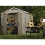 The Factor 8×11 shed gives you ample storage with plenty of convenience. Made from durable weather-resistant resin, this shed won’t rust or rot like wooden sheds, and comes with steel reinforcements for added strength. It features a heavy-duty floor that protects your equipment from water and mud, high-arched double doors that will allow you easy access to the shed contents, and with two shelves are included for instant organized storage. A full-length skylight lets in plenty of natural light, and it’s lockable too, so you can keep your contents safe, day and night.