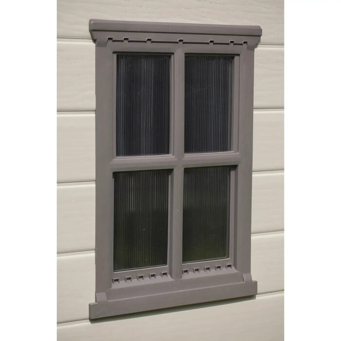 The shed is constructed from durable and robust polypropylene with steel reinforcement. The wood effect finish is UV stabilised for fade resistance, and the shed is virtually maintenance free, simply requiring an occasional wash to stay looking clean.