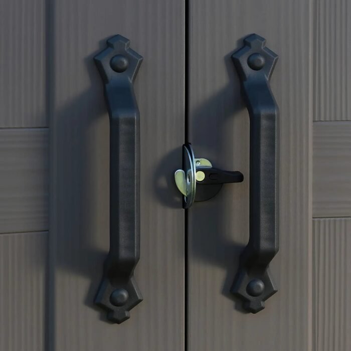 The Factor 8×11 shed gives you ample storage with plenty of convenience. Made from durable weather-resistant resin, this shed won’t rust or rot like wooden sheds, and comes with steel reinforcements for added strength. It features a heavy-duty floor that protects your equipment from water and mud, high-arched double doors that will allow you easy access to the shed contents, and with two shelves are included for instant organized storage. A full-length skylight lets in plenty of natural light, and it’s lockable too, so you can keep your contents safe, day and night.