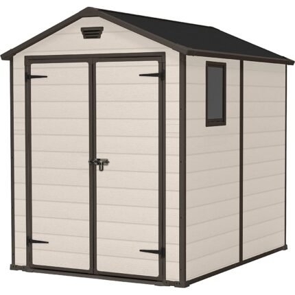 The Keter 6′ x 8′ Manor Plastic Garden Storage Shed – Beige is compact, sturdy and built to last. The