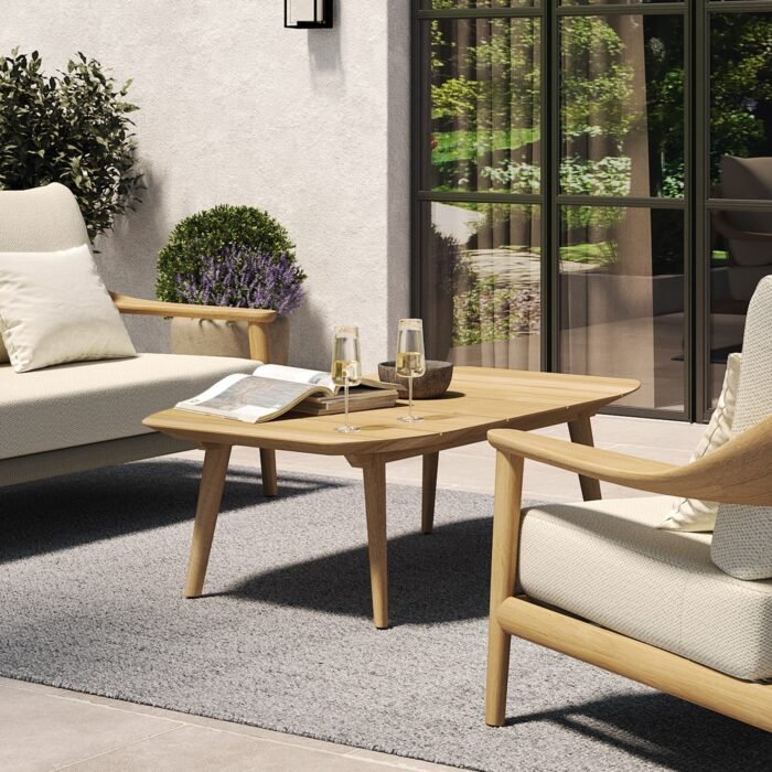 The N1 coffee table stands as a key element within the N1 lounge collection, epitomising the understated elegance inherent in high quality teak. Its light hue offers a serene sophistication, with the wood’s natural grainy texture serving as a testament to skilled artistry and the enduring appeal of raw materials.