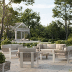 Perfect for soaking up summer evenings the N7 Two Seater sofa is a harmonious blend of refined aesthetics and craftsmanship. The chair has two oversized seats allowing its users to instantly retreat to a serene calm. Its elegant neutral coloured aluminium frame perfectly complements the warm, natural tones of the N7 Collection. The colour palette encouraging deep relaxation as you sink into the Natural Weave fabric covered cushions. The hand-woven detailing around the back and arms adds intricacy, making each piece a unique work of art. The harmonious contrast between the sleek aluminium and the organic weave pattern offers a visual and tactile experience that elevates any outdoor dining area.